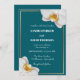 Invite your loved ones to celebrate your union with this sophisticated and vibrant teal wedding invitation. This design features a rich, deep teal background that provides a stunning contrast to the crisp, white orchid blossoms that frame the corners. A delicate metallic-look gold border adds a touch of luxury and refinement to the overall presentation.