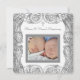 Elegant silver swirls white twin fotografía invitación de bautizo. Esta hermosa invitación de bautizo blanca se personaliza fácilmente para su evento simplemente agregando su foto y detalles del evento, estilo de letra, tamaño y color de letra, y redacción.