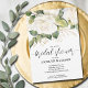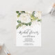 A bridal shower invitation features white roses, green and gold leaves with your details in chic lettering and room to add additional information on the back. MATCHING items in our collection.