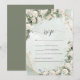 Elegant white roses on a sage green background. Select the "customize" button to change the font style, color, and size.