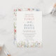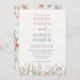 Delicate wildflowers in blush pink, dusty blue, and soft sage green bloom along the border, creating a romantic, nature-inspired look. The classic serif fonts paired with a graceful handwritten accent make this invitation timeless yet modern.