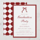 Elegant Wine Red Coquette Bow Graduation Party Invitation. A simplistic, classic and formal wine red and white graduation party invitation, designed with script lettering, a bow, and checkered pattern on the back. Personalize with graduate's name, year of graduation, RSVP info, and further details for your celebration.