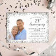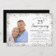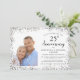 Esta invitación al 25º Aniversario del Boda es perfecta para cualquier pareja casada que quiera brindar por un fabuloso 25 años juntos. El diseño presenta un borde purpurina plateado y una tipografía manuscrita elegante. Carga fácilmente tu propia foto y edita todos los detalles usando la plantilla proporcionada. Póngase en contacto con el diseñador para cualquier pregunta relacionada con este diseño o para cualquier producto que coincida.