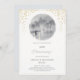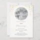 Celebre una historia de amor atemporal con esta hermosa invitación para el 50 aniversario. Con una romántica vista de la ciudad bajo una suave lluvia neblinosa y una pareja bajo un paraguas rojo, este diseño captura la magia de un viaje de toda la vida juntos. El marco circular de la foto está rodeado de delicados acentos de hoja de oro, lo que añade un toque de lujo y elegancia, perfecto para un aniversario de oro.