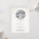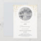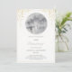 Celebre una historia de amor atemporal con esta hermosa invitación para el 50 aniversario. Con una romántica vista de la ciudad bajo una suave lluvia neblinosa, y una pareja bajo un paraguas rojo, este diseño captura la magia de un viaje de toda la vida juntos. El marco circular de la foto está rodeado de delicados acentos de hoja de oro, lo que añade un toque de lujo y elegancia, perfecto para un aniversario de oro.