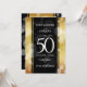 Haga el 50 aniversario de bodas una celebración inolvidable con estas invitaciones. Letra elegante en blanco y negro con confeti hexagonal en lámina dorada y fondos negros añaden un toque memorable para esta ocasión especial y hito extraordinario. Personalice con los nombres de la pareja, lugar, dirección, fecha y hora.