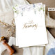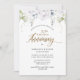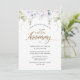 Celebre la alegría de su aniversario de bodas con esta hermosa invitación de aniversario elegante. Capacidad para agregar cualquier número de aniversario que necesite. Diseño con exquisita vegetación de acuarela y flores blancas con toques de tonos azules que enmarcan los detalles de su aniversario. La frase "aniversario de bodas número" en una hermosa mezcla de caligrafía manuscrita en e dorado falso y tipografía de bloque. Dorso elegante con el mismo detalle de vegetación y floral que la parte frontal y la frase "aniversario de bodas número" en dorado. Parte de nuestra colección "Elegant Bliss" con gran variedad de productos coordinados, desde accesorios de correo hasta todos los letreros y productos para el evento especial.