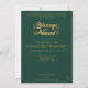 Celebre el día de Acción de Gracias con elegancia y calidez gracias a esta lujosa tarjeta verde adornada con un diseño clásico de cornucopia y hojas doradas de otoño. El rico fondo verde contrasta maravillosamente con los acentos dorados, creando un ambiente sofisticado y acogedor que capta la esencia de gratitud y cosecha. Ideal para compartir los más sentidos deseos de Acción de Gracias con sus seres queridos, esta tarjeta ofrece un toque refinado a los sentimientos tradicionales de las vacaciones. Personalice el mensaje que aparece en el interior para que sea el único suyo para la temporada de Acción de Gracias