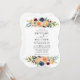 Moderna y elegante acuarela Floral y verde Invitación a la boda incluye rosas de flores doradas amarillas, melocotones, azules, burdeos y rojas y vegetación botánica.