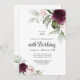 Celebra un aniversario especial con esta hermosa invitación a la fiesta con florales fronteras en rosas borgoñas y rosas rosas rosas en cada lado del texto elegantemente colocado. Los colores son rosa pálido, rojo burdeos profundo y ciruela mezclada con vegetación etérea y flores de acento blanco diminuto. Personalice la plantilla de texto con su información. Puede editar la edad a cualquier cumpleaños de edad.