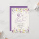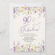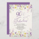 Una elegante invitación a la fiesta de cumpleaños 90 de color crema clara con "90 & Fabulous" exhibida en un guion de moda morado y acuarelas de flores silvestres moradas, rosas y amarillas. Personalice el nombre del honorario y los detalles del fiesta con letras sencillas y modernas.