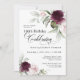Celebra un cumpleaños especial con esta hermosa invitación de cumpleaños número 100. Presenta elegantes bordes florales en rosas borgoñas y rosas rosas a cada lado del texto elegantemente colocado. Los colores son rosa pálido, rojo burdeos profundo y ciruela mezclada con vegetación etérea y flores de acento blanco diminuto. Personalice la plantilla de texto con su información. Puede editar la edad a cualquier cumpleaños de edad.