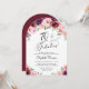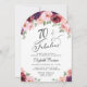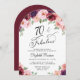 Invitación a la fiesta de cumpleaños 70 en forma de arco de moda que incluye "70 & Fabulous" en un guión elegante y ramos de acuarela de flores rojo, rosa y morado de color burdeos.