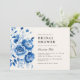 Invitación Elegante acuarela Floral Azul ducha de novia