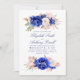 Estas elegantes invitaciones a la boda cuentan con hermosas flores de color azul marino y suave color de agua rosa.