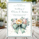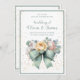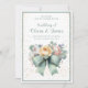 Una bonita tarjeta boda con flores de color suave en tonos pastel, acentuada con detalles de confeti dorado y una gran proa elegante. Ideal para parejas que buscan un estilo atemporal, romántico y sofisticado para celebrar su día especial.