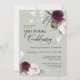 Celebra un cumpleaños especial con esta hermosa invitación de cumpleaños número 100. Presenta elegantes bordes florales en rosas borgoñas y rosas rosas a cada lado del texto elegantemente colocado. Los colores son rosa pálido, rojo burdeos profundo y ciruela mezclada con vegetación etérea y flores de acento blanco en un fondo verde sabio. Personalice la plantilla de texto con su información. Puede editar la edad a cualquier cumpleaños de edad.
