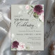 Celebra un cumpleaños especial con esta bella y femenina invitación a la fiesta de cumpleaños número 50. Presenta elegantes bordes florales en rosas borgoñas y rosas rosas a cada lado del texto elegantemente colocado. Los colores son rosa pálido, rojo burdeos profundo y ciruela mezclada con vegetación etérea y flores de acento blanco en un bonito fondo verde sabio. Personalice la plantilla de texto con su información. Puede editar la edad a cualquier cumpleaños de edad.