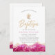Invitación Elegante Agate de Oro Rosa con Cruz | Bautismo