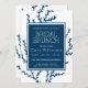 NewParkLane - Invitación moderna de brunch nupcial con estilo náutico, que presenta un patrón elegante de algas marinas azul turquesa / índigo sobre un fondo blanco.