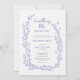 Elegante invitación botánica con un suave marco de hojas azules. Perfecto para bañeras, bodas o eventos minimalistas. Limpio, moderno y editable.