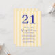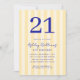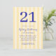 Crea tus propias invitaciones personalizadas de 21 años con tipografía moderna y fondo de patrón amarillo rayado