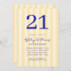 Invitación Elegante amarillo azul moderno cumpleaños 21