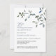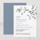 Este sencillo diseño de aniversario presenta vegetación en acuarela con acentos azules, fondo blanco y tipografía elegante.