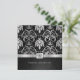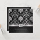 Hermosas invitaciones de aniversario de bodas de 25 años de damasco vintage negro y plateado metálico. Celebración del vigésimo quinto aniversario de bodas.
