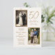 Celebre un hito verdaderamente especial con nuestra invitación de aniversario de bodas de 50 años en marfil y dorado Años Dorados, diseñada para honrar cincuenta años de amor, compromiso y recuerdos preciados. Perfecta para una ceremonia de renovación de votos o una elegante fiesta de aniversario, esta invitación captura hermosamente el viaje de toda una vida. Con un clásico fondo marfil con acentos dorados lujosos, una disposición de fotos de "entonces y ahora" y tipografía elegante, esta invitación es perfecta para conmemorar el aniversario de oro de una pareja con estilo.