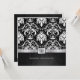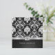 Hermosas invitaciones de aniversario de bodas de 50 años con damasco vintage negro y plateado metálico platino. Celebración del Aniversario de Bodas de Cincuenta Años.