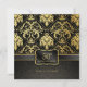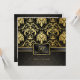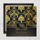 Hermosas invitaciones de aniversario de bodas de oro vintage de damasco negro y dorado metálico. Con patrón de damasco negro y gris. Celebración del Aniversario de Bodas de Oro.