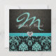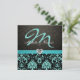 Invitación Elegante Aqua Blue / Black Damask Monograma invita