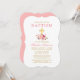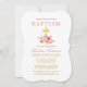 Invitación Elegante Aquarela Rosa Floral Bautizo Dorado