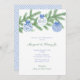 Elegante vacaciones parejas diseño de invitación a la boda con un patrón de decoración de clave griega en color azul y blanco. La rama de los abetos y las baubles chinoiserie fueron pintadas a mano por mí en acuarelas antes de ser escaneadas en forma digital. He configurado la plantilla para un Fiesta de ducha de boda, pero todos los campos de texto son completamente personalizable a sus necesidades.