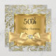 Invitación de Aniversario de Bodas número 50. Elegante diseño de arco de diamante de oro y remolino floral. Tenga en cuenta: ¡Todas las imágenes planas! ¡No tienen joyas reales!