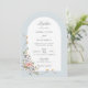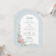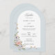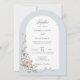 El diseño es romántico y elegante, con rosas pastel y flores silvestres en tonos rosas, blancos, violetas pálidas y dorados sobre un fondo verde de menta clara con un centro de arco blanco. Este diseño también incluye gráficos de texto fluidos en una fuente caligráfica personalizado. El color de fondo también es personalizable.