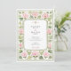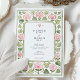 Invite a sus huéspedes en un estilo atemporal con esta exquisita invitación a la boda inspirada en la belleza del movimiento Art Nouveau. El diseño presenta un delicado e intrincado borde de rosas estilizadas rosas y hojas verdes vinícolas, creando un marco impresionante para sus detalles bodas. La textura de acuarela suave y la tipografía clásica evocan una sensación de romance vintage y elegancia artística. Perfecto para una boda en el jardín, una celebración clásica, o para cualquier pareja con apreciación por el arte histórico, esta invitación seguramente hará una hermosa primera impresión. Un monograma de personalizable en la parte superior añade un toque personal.