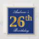 Invitación Elegante, azul, falso oro 26 cumpleaños + nombre