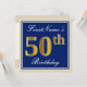 Invitación Elegante, azul, falso oro 50 cumpleaños + nombre