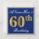 Invitación Elegante, azul, falso oro 60 cumpleaños + nombre