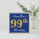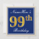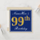 Invitación Elegante, azul, falso oro 99º cumpleaños + nombre