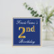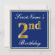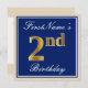 Invitación Elegante, azul, falso oro segundo cumpleaños; nomb
