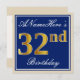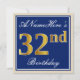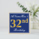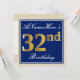 Invitación Elegante, Azul, Faux Gold 32 cumpleaños + nombre
