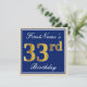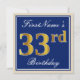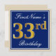 Invitación Elegante, Azul, Faux Gold 33 cumpleaños + nombre