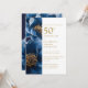 Invitación Elegante azul y dorado floral 50 aniversario