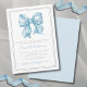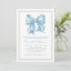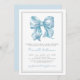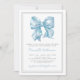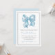 Una encantadora decoración de una ducha de bebé con un adorable arco de color azul cielo. La parte frontal incluye líneas caligráficas manuscritas en un suave color azul para coincidir con el arco, emparejadas con un doble marco gris fino para un toque elegante y tradicional. La parte posterior presenta un color azul claro que complementa el arco de la parte delantera. Este diseño sencillo y minimalista ofrece un estilo clásico de ducha de bebé, con texto gris en una mezcla de tipografía de escritura serif y caligrafía. ¡Celebren a la futura madre con estilo! Puede personalizar el tipo de letra y los colores de fondo para que se ajusten a su tema. Perfecto para las duchas infantiles durante todo el año, pero especialmente encantador para un fiesta o un brunch. La decoración es sin esfuerzo, con cintas y arcos azules, o también se pueden incorporar otros temas. Disponible como invitación impresa o como una invitación digital descargable que puede enviarse por correo electrónico o imprimirse localmente.