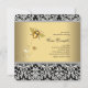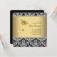 Adorable invitación de baby shower de abejorro negro y amarillo con damasco negro. Esta elegante invitación de baby shower de abejorro se personaliza fácilmente para su evento agregando los detalles del evento, estilo de fuente, tamaño y color de fuente, y redacción.