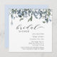 Elegante Invitación de Baby Shower Floral Acuarela de Color Azul Polvoriento y Verde