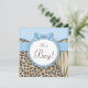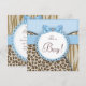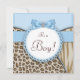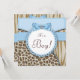 Adorable invitación de baby shower de leopardo y tigre marrón claro y azul bebé. Esta elegante invitación de baby shower de safari en marrón y azul se personaliza fácilmente para su evento agregando los detalles del evento, estilo de fuente, tamaño y color de la fuente, y redacción.